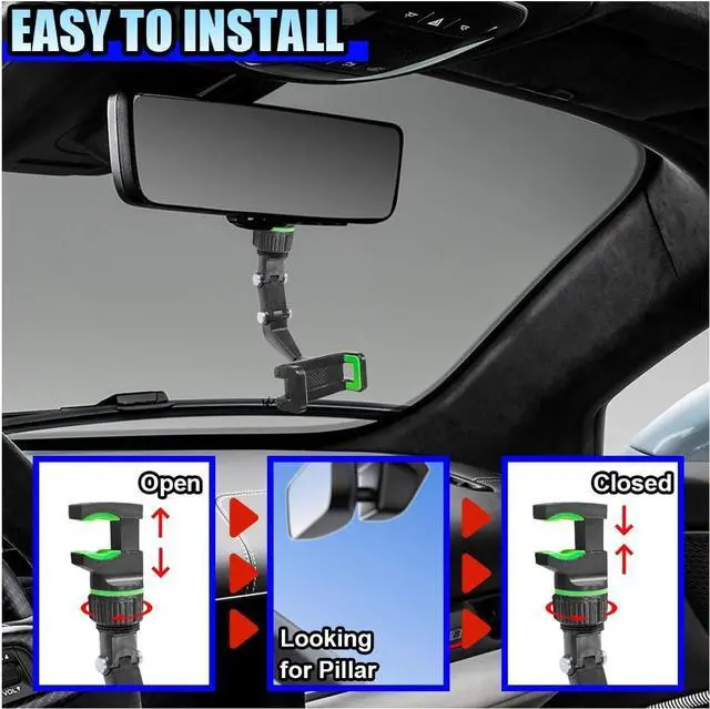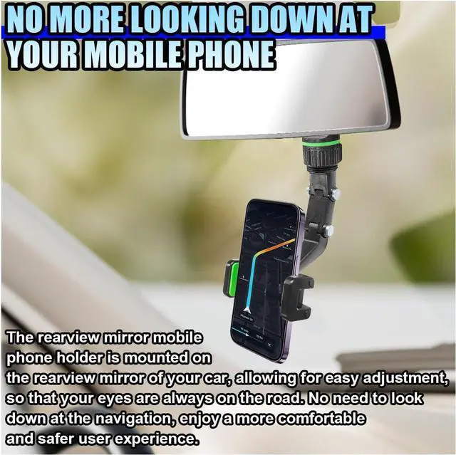 Phone: Even when the vehicle is driving on a bumpy road the rotating car phone stand can be firmly fixed on the rearview mirror so you can clearly view the content on your phone without having to look down ensuring that your eyes are always focused on the road ahead effectively improves driving safety and safeguards every trip of yours.