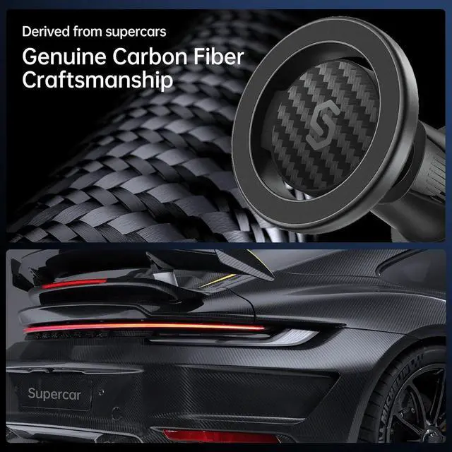 Note: for iPhone 11-12 series please use Magsafe cases or metal rings. Genuine Carbon Fiber CraftsmanshipInspired by supercars this MagSafe car mount is designed to seamlessly complement your luxury car. Unlike other car mounts on the market SYNCWIRE's car mount is crafted from high-quality genuine carbon fiber material seamlessly blending aesthetics and luxury ensuring the ultimate experience in both visuals and usability. Secure Metal Hook & Anti-overtightening DesignThe MagSafe car mount employs a solid metal hook design that tightens upon rotation ensuring an exceptionally strong hold. The metal hook is 50% longer than the ordinary version compatible with a wide range of horizontal and vertical vent types. Additionally our clamp design integrates an anti-overtightening mechanism preventing vent blade damage caused by excessive force during installation. Easy Placement & AdjustmentsFeaturing a 360-degree rotatable ball joint our MagSafe car phone mount offers unparalleled adjustability. Effortlessly fine-tune tension using the rotating back knob to achieve your desired viewing angle. Placing your phone on the Syncwire MagSafe car phone mount is a straightforward one-step process freeing your hands and enhancing safety during calls and GPS navigation. Minimal InterferenceEngineered with a circular design the MagSafe phone holder for the car ensures uninterrupted signal reception while reducing vent strain and maintaining optimal airflow for effective heat dissipation.