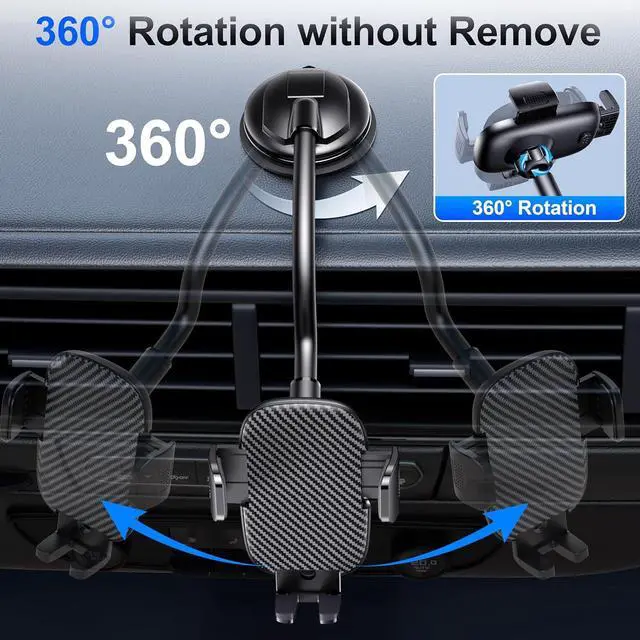 No Blocked View: Phone stand for car can be mounted on dashboard or windshield and at any angle with the 360° rotatable Joint Ball and a freely bendable and adjustable 16cm/ 6.2 in aluminum Long Gooseneck bracket. It is favorable for GPS navigation and sending and receiving mobile phone calls. All for the best view convenient and safe drive.