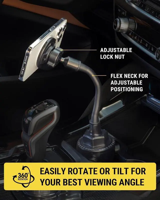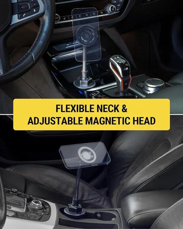 Durable Design: Securely mount your phone in your cars cup holder with this magnetic cellphone holder for car. This adjustable stand offers reliable stability while seamlessly fitting into most vehicle cup holders complementing your car's interior with its modern designBuy