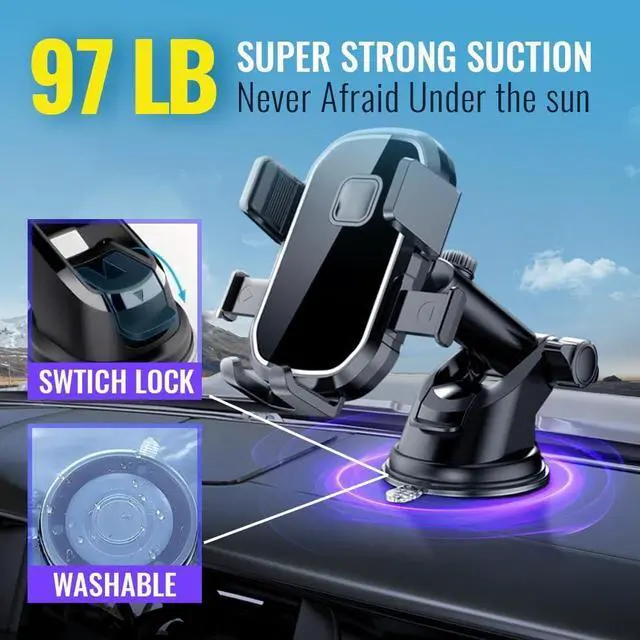 ??????????????????????????????????????????????????! The BRANDNEST upgraded phone mount is built like a beast. With a military-grade suction cup that holds over 95 lbs it locks firmly onto your dashboard windshield or vent no slipping no wobbling. Designed to handle extreme heat without melting or leaving sticky residue its your reliable road companion for every ride.