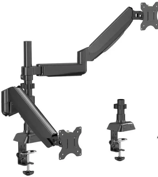 - Full-Motion Adjustability - Our dual monitor desk mount offers full-motion adjustability. +/-90° swivel for easy screen sharing, +45°/-45° tilt for the ideal screen angle, and 360° rotation for landscape or portrait mode. Dual pneumatic springs enable seamless height adjustments by dynamically counterbalancing monitor weight. You can customize your screen angle and height effortlessly to Increase comfort and enhance productivity.
