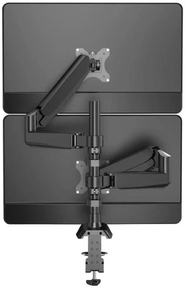 - Enhanced Ergonomic Design - Our dual monitor arm features an additional 16.5-inch column, which allows you to raises screens to a maximum height of 26.6 ( VESA center to desktop). Perfect for users seeking elevated viewing position or taller individuals, this design improves the comfort of use. Also, the extended-height pole enables vertical screen stackingideal for multitasking or space-constrained environments.