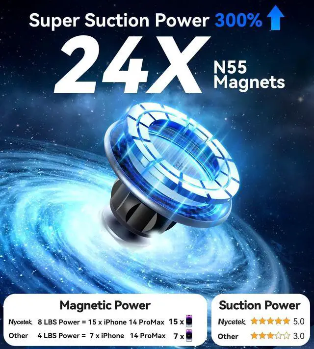 [Ultra Strong Magnetic Force] The tesla car phone holder is equipped with Tesla-Approved 24 strongest N55 magnets, which have 300% more magnetic force than N52 magnets. Strong enough magnetic power to keep your cell phone stable even on bumpy roads.