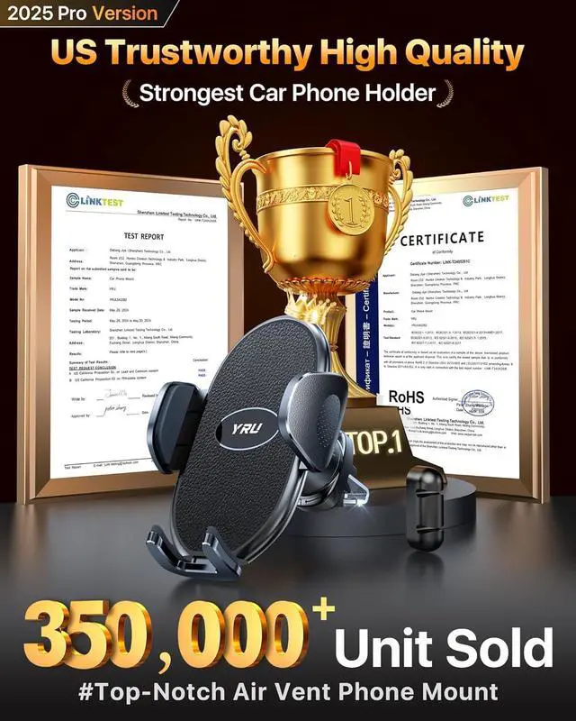SHOCKPROOF: Features a strong triangle support, an extendable steel clip hook and a metal screw mechanical lock clasp, YRU car phone mount holds your phone tightly to the air vent and maintains the optimal viewing angle even on the bumpy road or sharp turn. Integration of up to 500+ competitors' advantages, 30000KM+ road test. Enabling you to drive in confidence