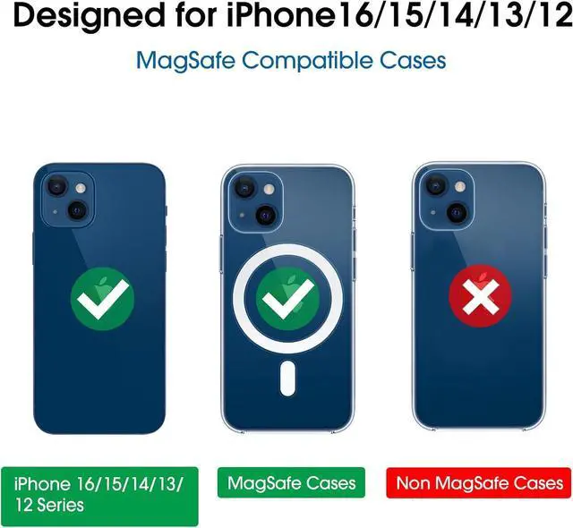 Designed for iPhone 16 15 14 13 12 SeriesThis magnetic air vent mount is designed for iPhone 16, iPhone 15, iPhone 14, iPhone 13 12 devices and also compatible with Mag-Safe phone cases (have built-in magnets).