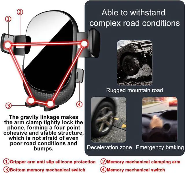 ONE-BUTTON RELEASEMikeHam phone stand for car have quick-release button and adjustable clamp arms, that enables you only take 0.3S to lock or release your phone. Provide you with safer driving whether you are talking, navigating, listening to music or charging.