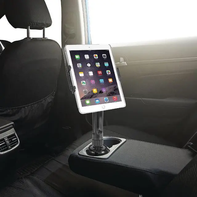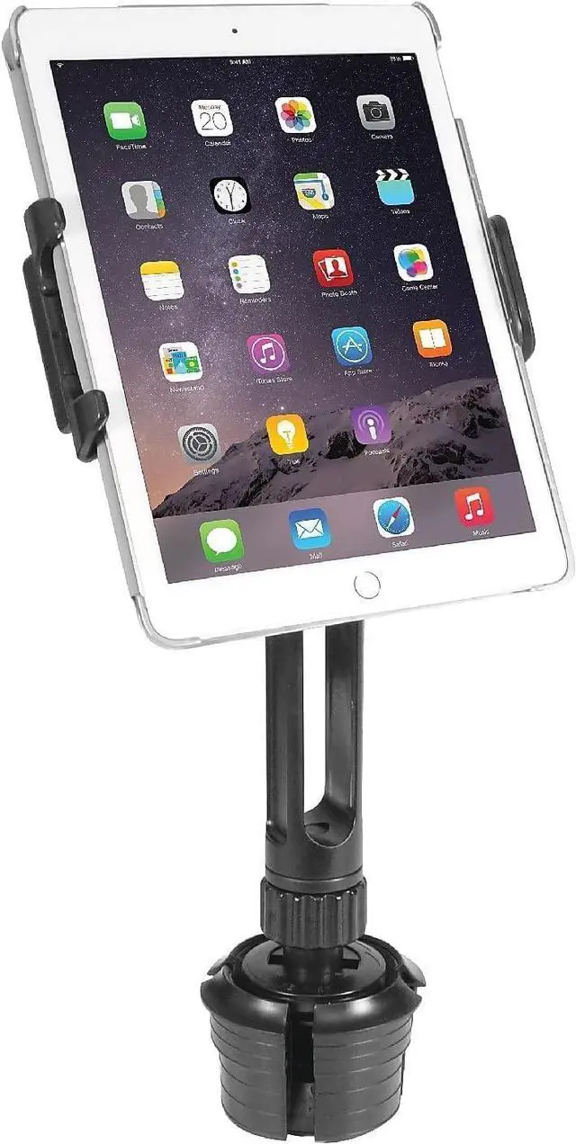 STABLE AND SECURE FIT: The tablet car mount easily fits a wide range of cup holders. It will securely mount onto cup holders between 2.5 - 4 which can be found in most cars, suvs, trucks, boats, and even sofas or massage chairs.