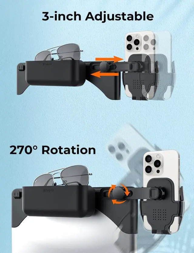 Dual-Side Phone Mount Detachable arm installs left/right - the only Tesla phone holder Model Y enabling driver+passenger use.