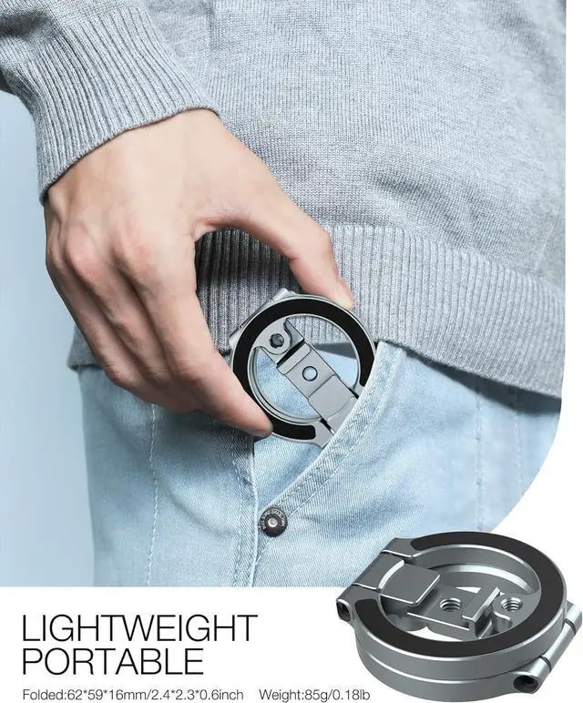 Compact & Portable Ring Holder This double magnetic ring phone holder is foldable and allows you to travel on the go, just fold it and put it into your backpack or magnetically attached to the back of your phone, it can bring you great convenience, takes up no space at all, and can be folded repeatedly without loose.