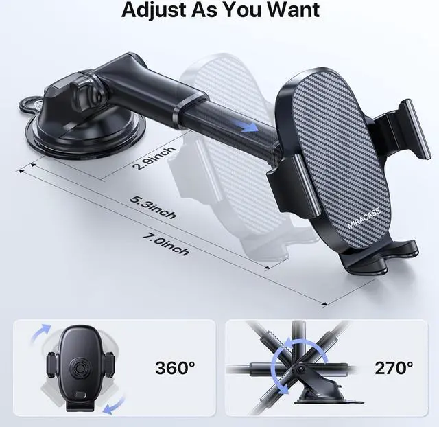 Multiple Viewing Angle& One-Hand Operation: The adjustable telescopic arm(from 5.3 " - 7.0 " ) and 360-degree rotatable ball joint make you can adjust your phone to any places and angles(including horizontal, vertical and more) you want, so you can see the phone screen easily and clearly. Just enjoy more convenient and safer driving. We offer Professional Support, if you have any pre-sales or after-sales problems, please contact Miracase for a quick solution.
