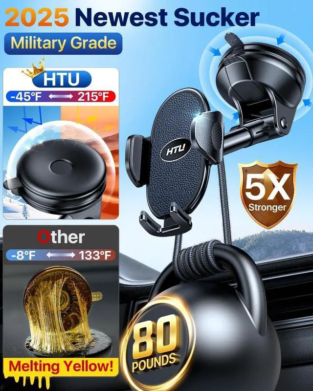 [Powerful Heat-Resistant Adhesion] Certified to CP65, the suction cup uses triple-layer nano-gel technology to support 80 lbs & 215. It ensures 0 drops on bumpy roads or during off-roading, providing superhero-level protection for your phone. 5x stronger suction installation