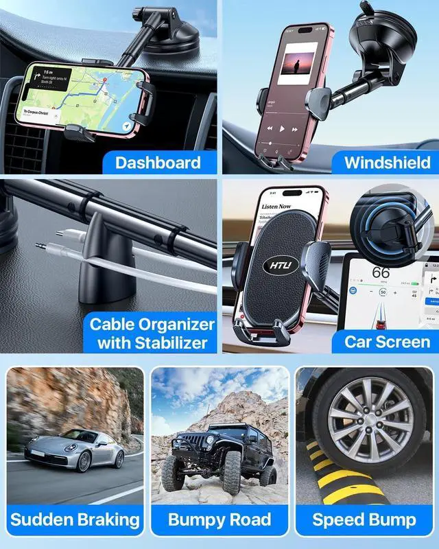 [Exclusive Triple-Function Cable Organizer] Includes a dedicated cable organizer: 1. Protects your car from scratches caused by the cell phone holder for car; 2. U-shaped design adds extra support, enhanced phone stability; 3. Charging cable management for tidy interiors and convenience