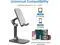 This cell phone holder tablet stand works with all 4-12.9 inches smartphones and most tablets with cases, Compability with iPhone 11 12 13 mini Pro X Xr XS Max, Compability with Samsung Galaxy S22 S21 S20 S10 S9 S8 Plus Galaxy Note 20 10 9 8 Plus.