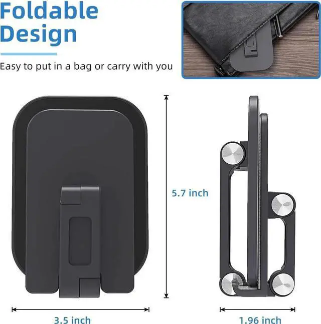 Foldable Desktop Cell Phone Stand Holder,Upgraded Extensiable Anti-Slip Base and Height Angle Adjustable Desk Phone Holder for iPad Pro Air Mini, iPhone, Smartphone 4.7-12.9" Tablets, Black