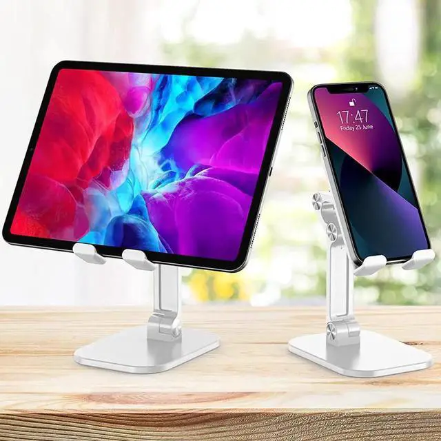 This cell phone holder tablet stand works with all 4-12.9 inches smartphones and most tablets with cases, Compability with iPhone 11 12 13 mini Pro X Xr XS Max, Compability with Samsung Galaxy S22 S21 S20 S10 S9 S8 Plus Galaxy Note 20 10 9 8 Plus.