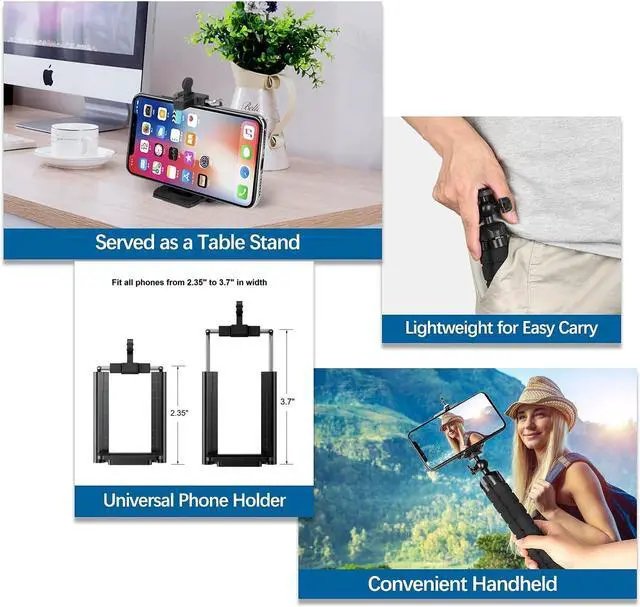 Versatile Smartphone TripodThe mini phone tripod stand works as a handle grip monopod stick or a bendy tripod that you can set on the tabletop or use on the move when taking selfies, group photos and vlogging. So whether you' re an amateur, enthusiast or professional, this is a must-have accessory for shooting on the go.