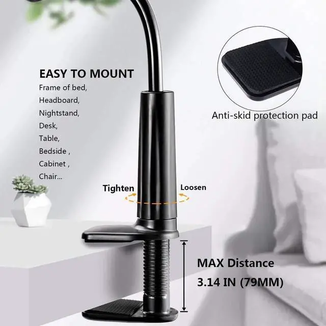 • It is a flexible long arm gooseneck holder stand for iPad,iPhone,google pixel,Samsung,LG Optimus,HTC,Nokia Lumia,Google Nexus,Kindle ,switch, and include 4.7-10.6 inch devices,can be clamp mounted on desk, bed, headboard,nightstand, bedside, chair, cabinet, wheelchair and more.Satisfy your needs whatever you are at home or on the go, Allows you to enjoy reading and watching anywhere.