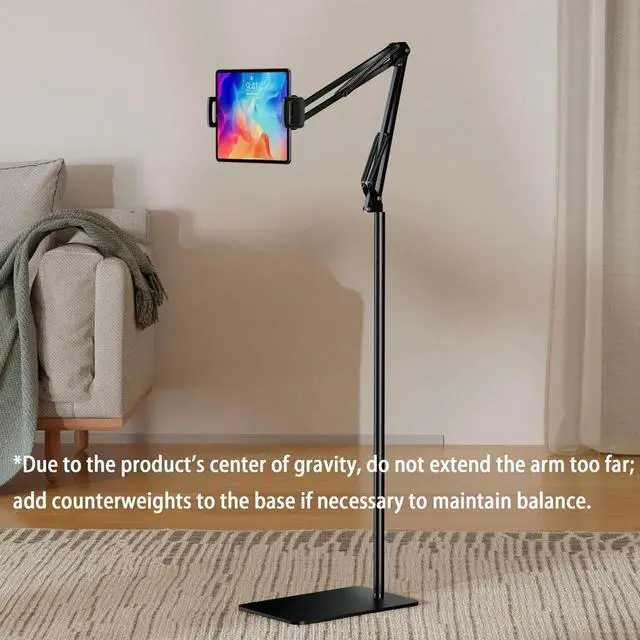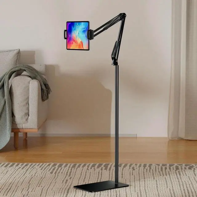 Tablet Floor Stand & Kindle Holder, Overhead Bed Reading Stand with 360° Rotatable Clamp and Height Adjustable Flexible Long Arm, Compatible with Kindle, iPad mini/Air/Pro, and 4.7 -14 Inch Devices