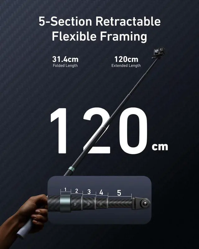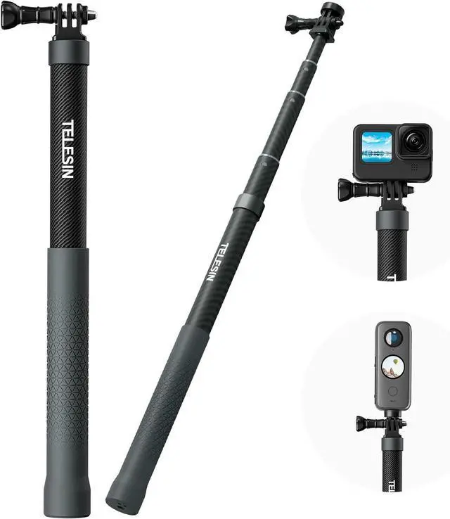 Extendable at Any LengthBreak free from fixed-length limits! With the upgraded telescoping technique, this TELESIN selfie pole can be detachable and extendable at any length as you want between 31.4cm/12.36inch to 120cm/47.2inch. (read the clockwise and counterclockwise remark to lock and unlock the pole).