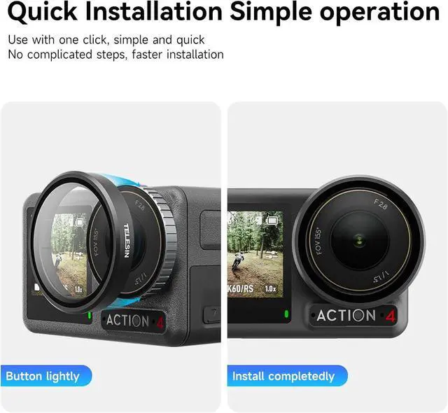 Compatibility & Warranty Compatible with D-J-I Action 3 and Action 4 camera lens. Package includes 1 x ND64 Lens Filter. 90 Days return policy, 1 year warranty.