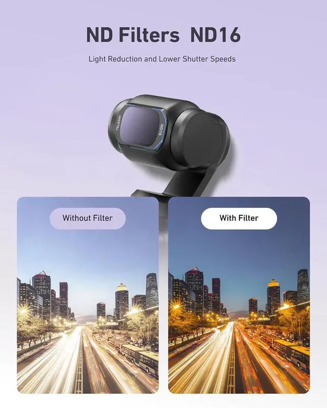 Multi-layer coated optical glassOsmo Pocket 3 ND16 filter adopts multi-layer high-quality coating technology, which is waterproof, oil-proof, dust-proof, scratch-proof and fingerprint-proof. It has high durability in outdoor shooting and minimizes reflection to ensure long-lasting optical clarity even in harsh conditions.