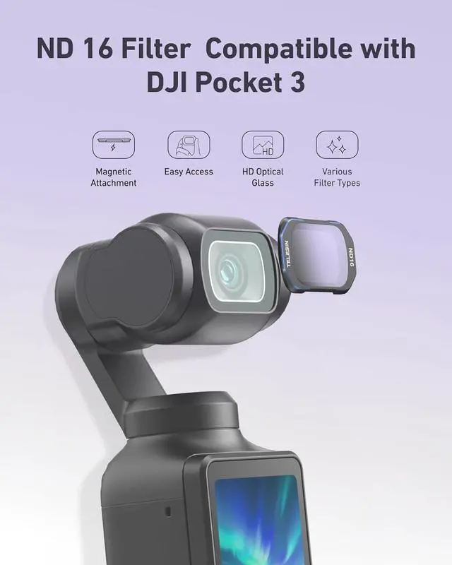 Perfect fitND16 filter specially customized for D-J-I Osmo Pocket 3, imported AGC optical glass lens + high light transmittance, accurately restore the true color of the scene, and present more natural details. The magnetic design enables fast loading and unloading, and the ultra-thin lens body completely avoids the problem of blocking and locking of the original filter.