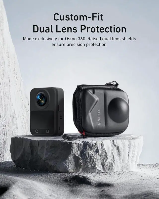 Tailored for D-J-I Osmo 360 - Specially designed to fit the D-J-I Osmo 360 camera perfectly. The TELESIN carry case offers precise space for the original lens cap or silicone cover, ensuring full compatibility and a snug fit.