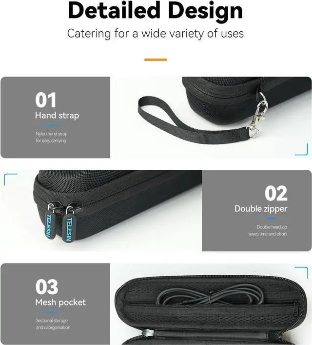 Telesin Mini Carry Case designed for D-J-I pocket 3 camera accessories.
