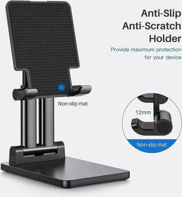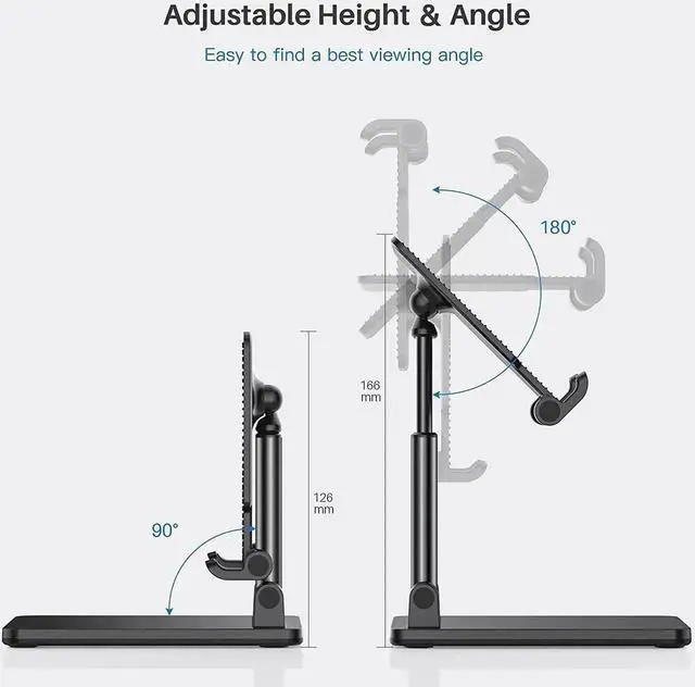 The angle of the universal phone stand can be adjusted from vertical to horizontal(0°-90°), and height can be extended up to 4.5 inches, which allows you to get most comfortable viewing posture. A good helper desktop accessory that frees your hands to watch videos, have online class, do live stream and so on.