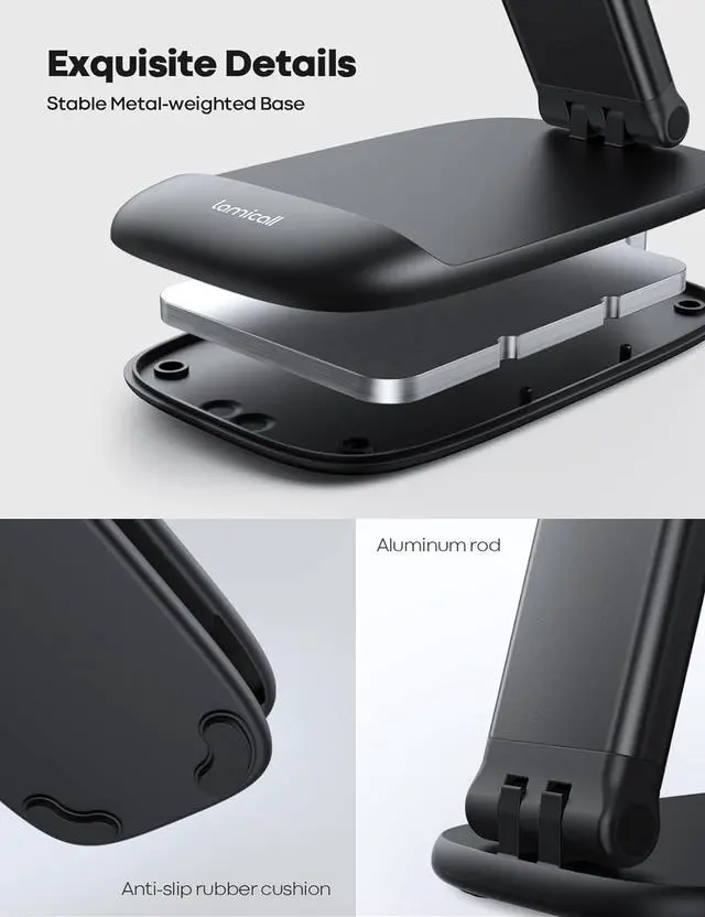 Weighted Metal Base - As to ensure the stability, the telescopic rod and the base of this mobile phone stand are made of weighted excellent metal. The exquisite groove design of the base match with the strong adjustable rod allows your mobilephone to rest steadily on it, even with a thick case. Its the best Thanksgiving Day, Christmas gift.