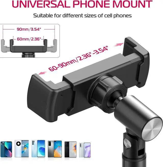 Wide Compatibility: The clamp of desktop smartphone stand width 60-90mm/ 2.36 " - 3.54 ", which can hold most mobile, such as iPhone 17/ 17 Air/ 17 Pro Max/ 17 Pro/16 15 14 pro max/13 Pro/13 Mini/12/12 Pro/12 Pro Max/12 Mini/iPhone 11/11 Pro/Max/X/MAX/XR/8/8P, Samsung Galaxy S22, S21, S20, Note 10/9/8/Plus, S10/S9/S8