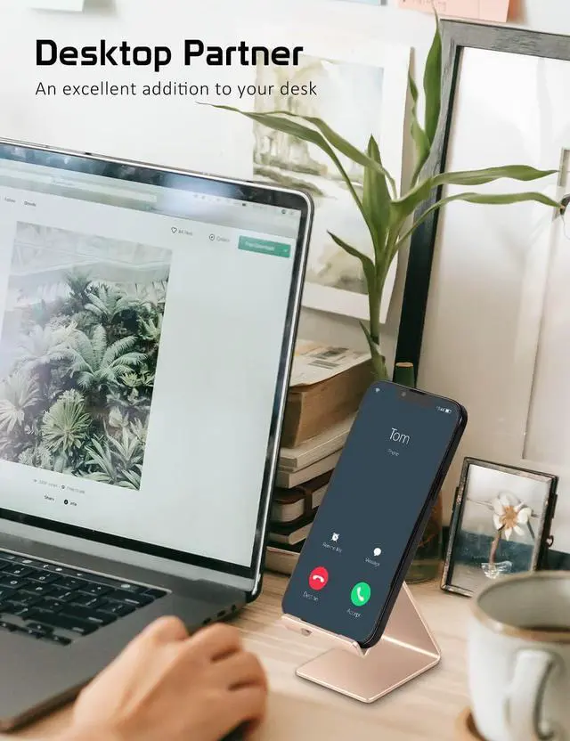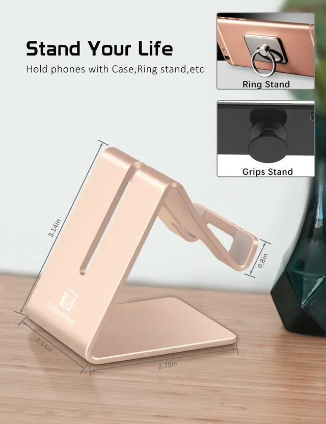 UPDATED SOLID & EXQUISITE WORKMANSHIP: Our phone stand for desk is made of 4mm thick aluminum, which is thicker than the normal phone stands (2/3mm). It has a smooth edge, is simple, lightweight, and works perfectly with your smartphones