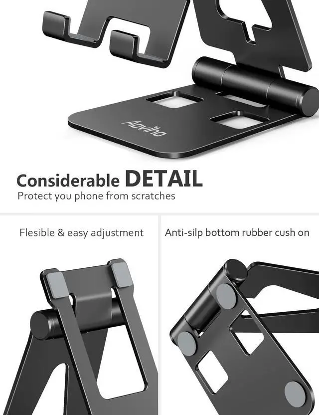 Adjustable and Foldable: The angel of cell phone holder can adjust up to 270 degrees to meet your viewing needs, relaxing your neck and giving you a multi - angel visual experience. Foldable design can save your space and easy to carry around. Whatever you want to use a phone stand, just remember to carry it.