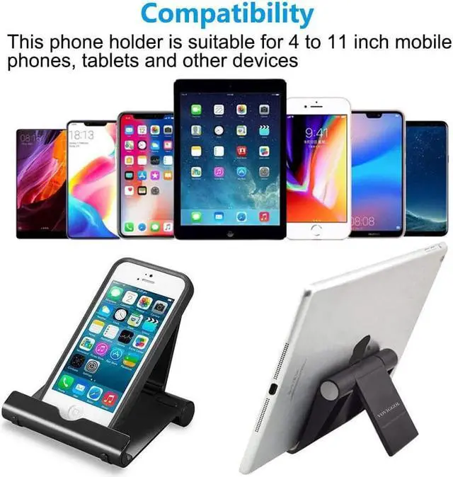 Widely Compatible and TipsThe universal mobile phone stand fits all smartphones and mini tablet. Not recommended to the phones with too heavy case, OR you can choose to rotate the mobile stand to 270° (Please refer to the picture), OR choose to remove the silicone pad.