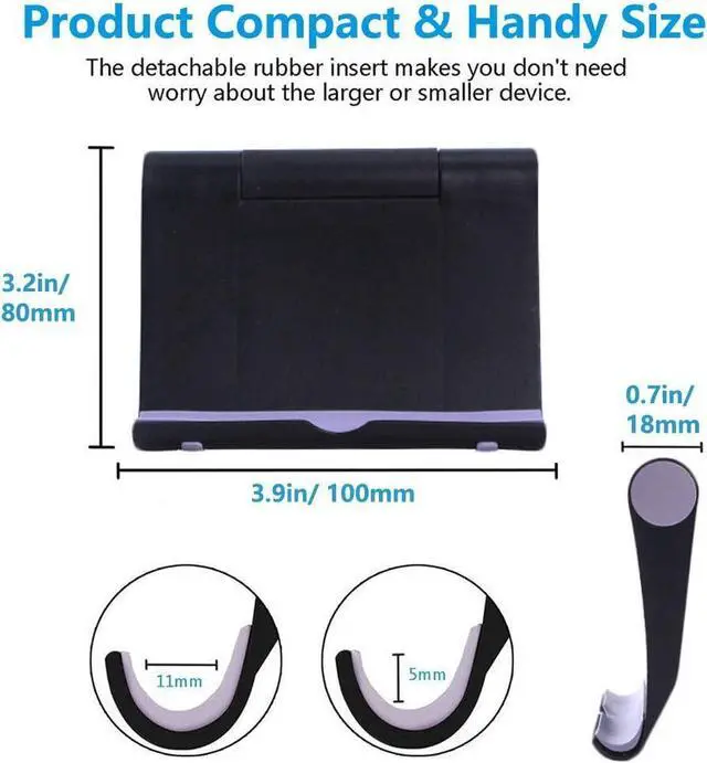 Lightweight & FoldableWith small size of 3.9 " x 3.2 " x 0.8 " and weight of 1.3 ounces, cellphone stand is lightweight and portable, but can bear a load of up to 11 pounds. With foldable design, phone stand holder is super easy to take out wherever you go. A great cell phone holder for desk, travel, home, kitchen and office.