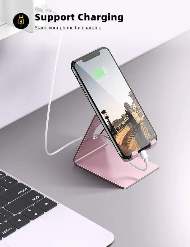 Wide CompatibilityThis cell phone stand is compatible with all 4-8 inches smartphones in phone cases, like iPhone 12 mini 11 Pro XS Max XR X 8 7 6 6S Plus, Galaxy S21 Ultra, S20, S10, S9, S9 Plus, A71, A51, A11, Edge, Note 20 ultra, LG, Sony, Moto, LG, Google Pixel, Nexus etc. Stable and Anti-scratchThe iphone stand is made of high-quality aluminium alloy with a nice finish. Stable and easy to watch Youtube or FaceTime. Besides, rubber non-slip pads protect the surface of your phone case and desk from scratches.