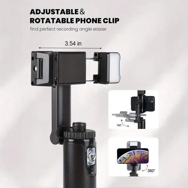 180° gimbal rotation + 360° phone clamp + 25° camera tilt.
