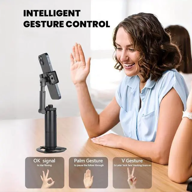 This auto-tracking phone holder combines portability, smart tracking technology and gesture control to help you capture videos easily anywhere. at home, outdoors, or on the go. Its foldable design makes it convenient to carry while maintaining a stylish and refined appearance.