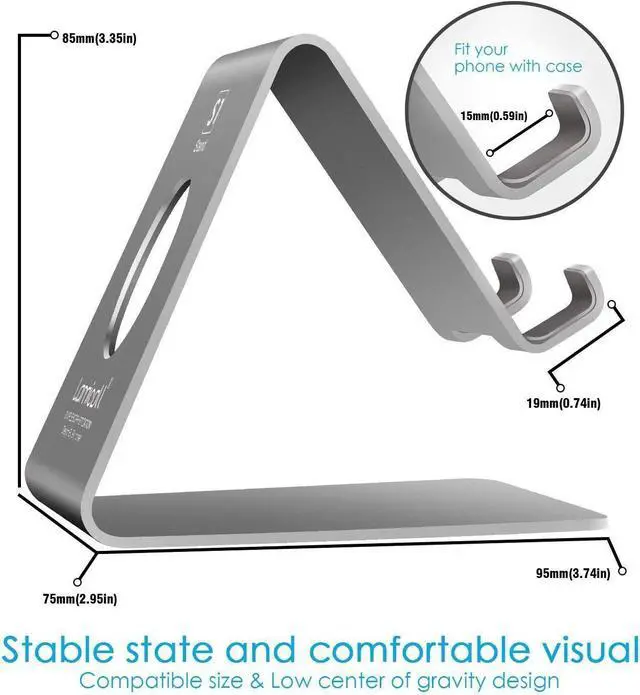Wide CompatibilityThis cell phone stand is compatible with all 4-8 inches smartphones in phone cases, like iPhone 12 mini 11 Pro XS Max XR X 8 7 6 6S Plus, Galaxy S21 Ultra, S20, S10, S9, S9 Plus, A71, A51, A11, Edge, Note 20 ultra, LG, Sony, Moto, LG, Google Pixel, Nexus etc. Stable and Anti-scratchThe iphone stand is made of high-quality aluminium alloy with a nice finish. Stable and easy to watch Youtube or FaceTime. Besides, rubber non-slip pads protect the surface of your phone case and desk from scratches.