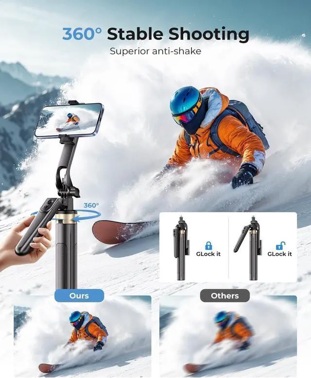 Telescoping Pole: Extends to a comfortable height for portraits or aerial shots made with durable materials for stabilityRotating