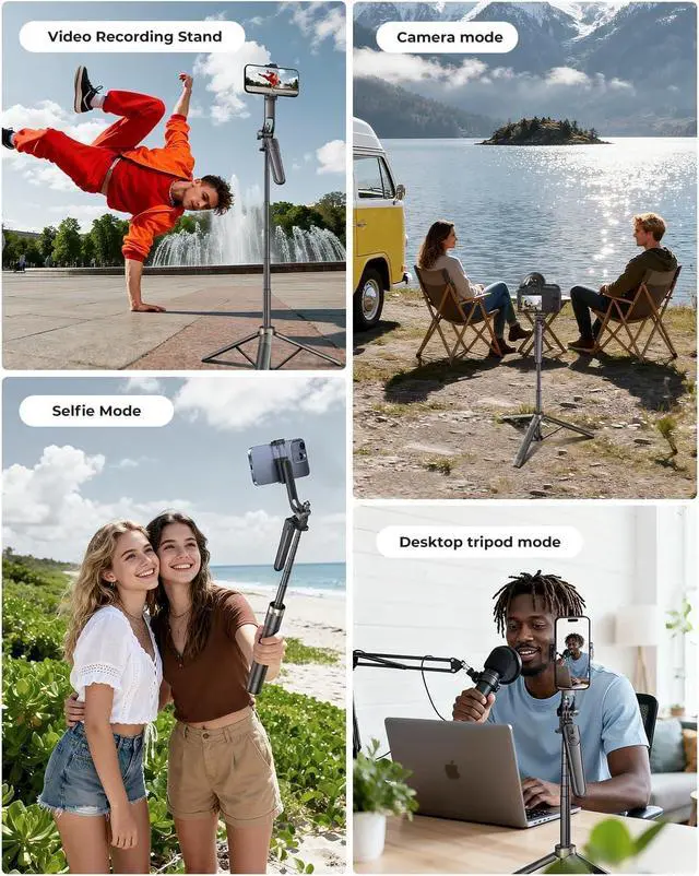 Use: Switch between selfie stick and tripod modes ideal for indoor or outdoor activities like vlogging or group photosWireless