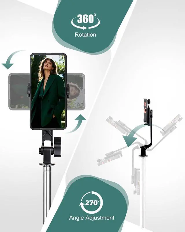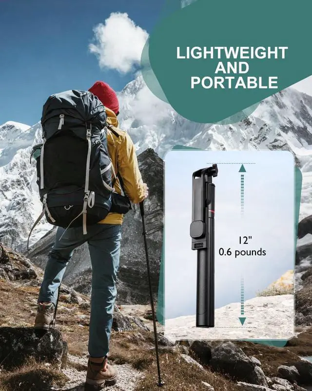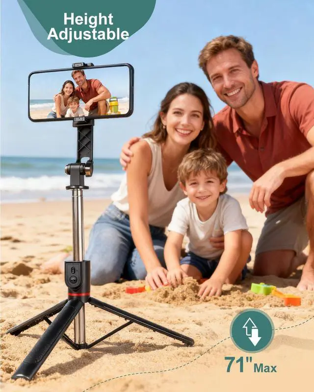 Multi-Function Selfie StickIts not just a selfie stickit doubles as a cell phone tripod. Simply extend the tripod legs at the base to effortlessly transform it into a stable stand. Whether indoors or outdoors it delivers exceptional stability making it the perfect choice for selfies live streaming video recording content creator and travel. Max Height 71The phone tripod extends up to 71 (180cm) offering greater height and a wider field of view than other phone tripods for more impressive shots. Remote ControlPhone tripod stand comes with a wireless remote that instantly pairs with your smartphone supporting remote shooting up to 10 meters/33 feet.