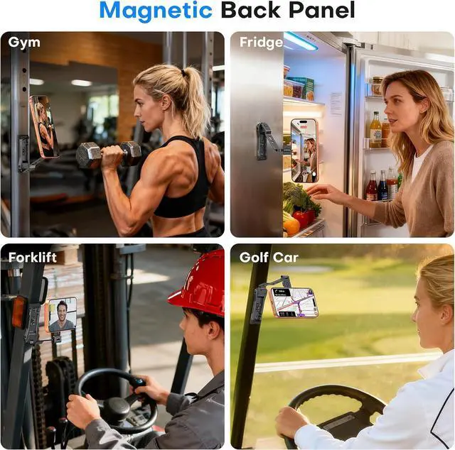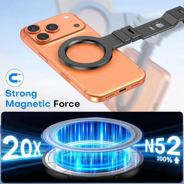 Magnetic: Tripod for cell phone built-in 20 super strong magnets can firmly fix the phone in place with one hand in just 0.1 s. Back magnetic head is compatible with MagSafe accessories like fill lights making it easy to grip your phone and focus fully on capturing the moment. cell phone tripod base magnet on the back can adhere to any metal surface. from gym equipment to kitchen fridgesinto your mobile creative studioUnique
