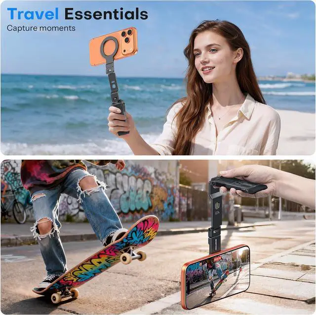 Compatibility: Magnetic selfie stick tripod is fully compatible for iPhone 17/16/15/14/13 Pro Max Air All Phone Series and Mag-Safe Cases. desk phone holder the included magnetic metal ring extends compatibility for All Android Phones and non-magnetic cases delivering a secure and stable like experience for all your devices