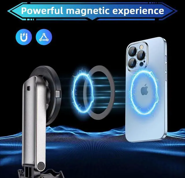 Magsafe: The selfie stick tripod phone in Magsafe is designed for iPhone 17/iPhone Air/iPhone 17 Pro/iPhone 17 Pro Max/iphone 12/13/14/15/16 Pro Max Mini and official Magsafe cases and other magnetic phone cases and can be fixed directly to these phones without the need to affix metal plates.