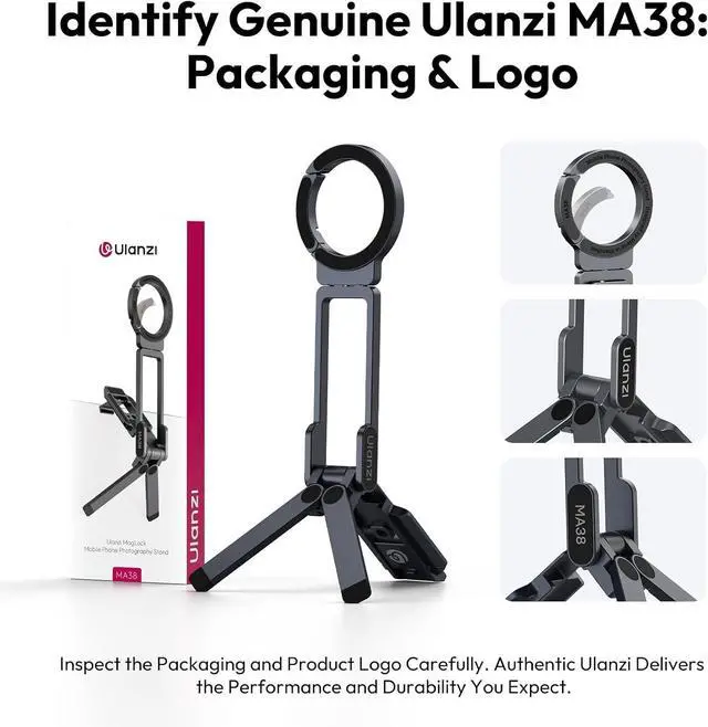 Ideal for creators on the move it combines the convenience of a magnetic phone stand with the stability of a tripod ensuring youre ready to shoot wherever you areDouble-Sided Magnetic PowerhouseShoot smarter not harder. The front MagSafe grips iPhone 12/13/14/15/16/17series securely. The powerful magnetic base on the back is your secret weapon: stick it to gym equipment to film your workout form attach it to the fridge for hands-free recipe scrolling or mount it on any metal surface (shelves railings etc. ) for unique angles. Flip between selfie and landscape in a snap professional content made effortless180° Rotation & Hidden Mantis HookNever miss the perfect angle. Instantly switch between front and rear cameras with 180° rotation. The stealthy hidden hook lets you hang it securely on monitors doors or cabinets no extra tools needed! Capture dynamic mantis-style shots for vlogs or get that elevated perspective easily. This mini tripod truly expands your creative horizonsArca - Swiss Ready & Expansion HolesArca - Compatible & Expansion Ports Equipped with an Arca - Swiss quick - release base and 1/4 Arri locating holes this Ulanzi tripod integrates into professional setups. It can connect to Arca tripod heads or have accessories like lights and filters added. As a powerful magnetic phone stand with pro - level expansion its perfect for creators seeking advanced shooting solutionsCompatible ModelsOur ULANZI MA38 magnetic tripod is compatible with iPhone 17/iPhone 17 Air/ iPhone 17 Pro/iPhone 17 Pro Max/iPhone 16 Pro Max/ iPhone 16 Pro/iPhone 16/ iPhone 16 Plus/iPhone 15/ iPhone 15 Plus/ iPhone 15 Pro/ iPhone 15 Pro Max/iPhone 14/iPhone 14 Plus/iPhone 14 Pro/iPhone 14 Pro Max/iPhone 13/iPhone 13 Mini/iPhone 13 Pro/iPhone 13 Pro Max/iPhone 12/iPhone 12Pro/iPhone 12 Pro Max/iPhone 12 Mini/ any iPhone models with Magsafe case or other brands smartphone needs to use metal ring.