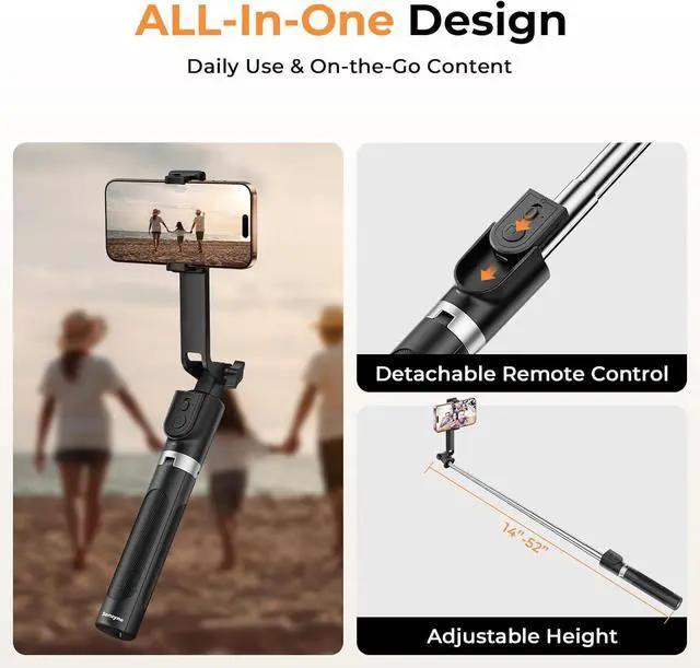 Easy Control: Take hands-free photos or videos from up to 33ft away with the detachable wireless remote. Great for selfies group shots and vlogging.