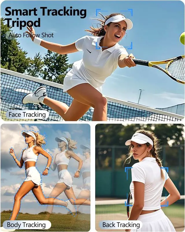 360° AI Face Tracking Smart Auto FramingEquipped with AI-powered motion tracking this tripod automatically detects and follows your face or body as you moveno app required. Its 360° rotation ensures youre always perfectly centered ideal for live streams video calls and content creation. Gesture & Remote Control Shoot Without TouchingNo need to reach for your phone. Simply show an OK sign to start recording or raise your palm to pause. The included wireless remote works up to 10m giving you complete freedom to shoot vlogs TikToks and selfies from a distance. Dual Fill Lights Included Professional-Quality LightingComes with two mini detachable LED lights to brighten your videos in low light.
