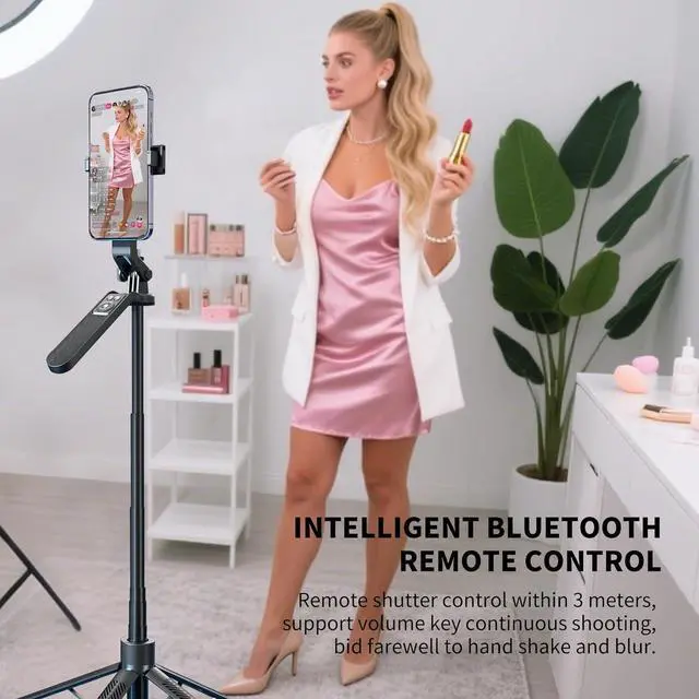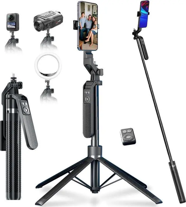 Adjustable: Thanks to the unusual design Its extendable legs allow you to adjust the height from ground level to eye-level perfect for full-body photo. This makes your smartphone or camera stays put You can enjoy taking photos betterPerfect for Content CreationIdeal for selfies vlogging and social media content creation the phone tripod comes with a wireless remote control for hassle-free shooting. Whether youre on Instagram YouTube TikTok or Twitter this phone stand for filming helps you capture professional-quality photos and videos with ease. making this tripod the perfect travel accessory! Wide Compatibility Phone TripodThis iPhone tripod is compatible with almost all mobile phone models such as: iphone series/15 Pro MAX Galaxy series Android phones OnePlus etc. Suit with various video apps such as TikTok Instagram Facebook Zoom and for live streaming photo and video shooting.